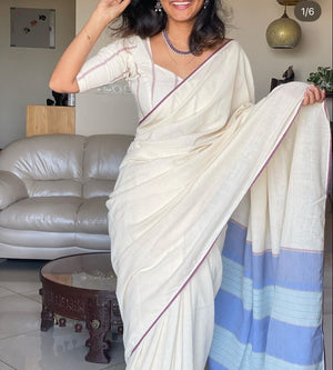 Vanya Authentic Organic Cotton dyed with Natural Indigo Stripes Handwoven Fabrics